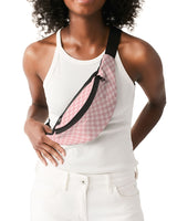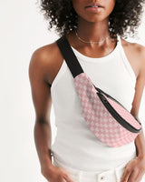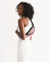 Sling belt bag with zipper openings and featuring Pretty Parisian Rosea print. Bag can be worn around the waist or over the shoulder as a sling style.
