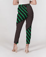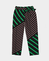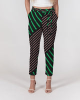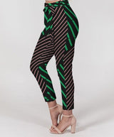 Belted trouser with elastic waistband featuring Crossing Lines Atera design.