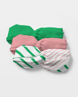 Set of three knotted headbands from the Crossing Lines Nivea collection. Knotted twist detail on the headbands add a flattering accent to any style.