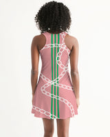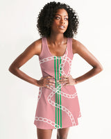 Racerback dress featuring Heritage Stripes & Links Rosea print.
