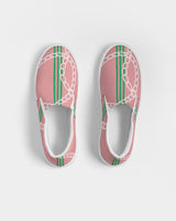 Classic rubber sole and canvas slip-on shoe style featuring Heritage Stripes & Links Rosea print.