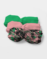 Set of three knotted headbands from the Glitched Plaid Atera collection. Knotted twist detail on the headbands add a flattering accent to any style.