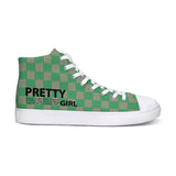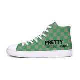 High-Top canvas sneaker featuring Pretty Parisian print. Pretty Parisian features "Pretty Girl" quote that reads "Beauty is not being superior to others. True beauty is being superior to ones former self.
