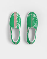 Classic rubber sole and canvas slip-on shoe style featuring Heritage Stripes & Links Viridi print.